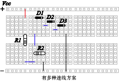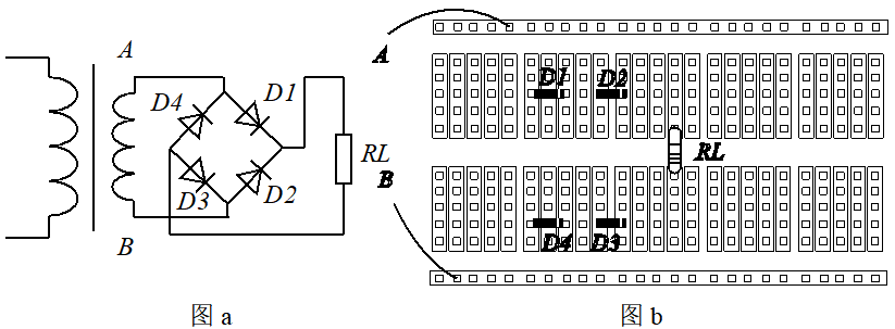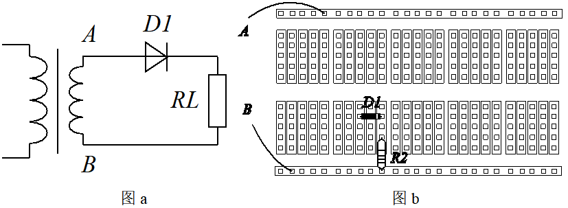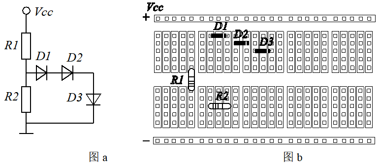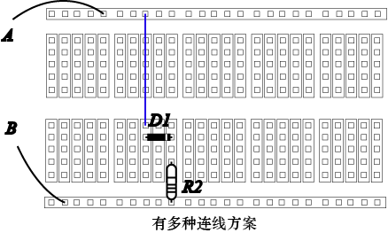 按图a电路所示,用导线将图b面包板上电子元件连接起来。